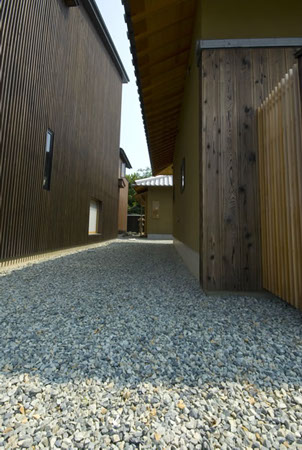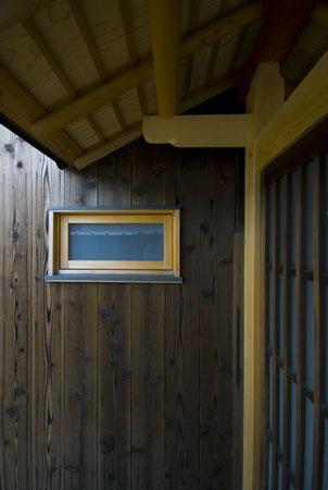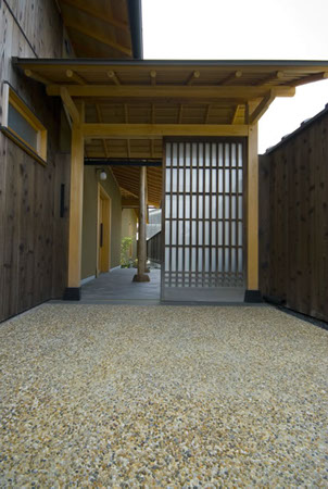 風の家の隣に建っている地の家は、脚の不自由なご主人の車椅子での生活を前提とした住宅です。世の中にはバリアフリー住宅が溢れています。しかし、機能ばかりを優先しすぎてデザインが置き去りになっている様な気がしています。バリアフリーという社会からの要求と和風住宅に住みたいというご主人の要望の2つを柱として設計を進めました。