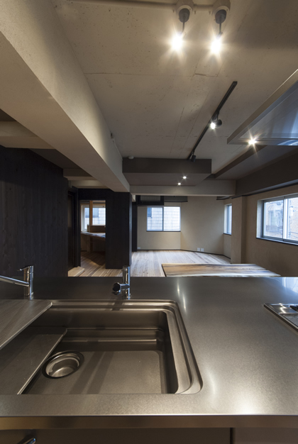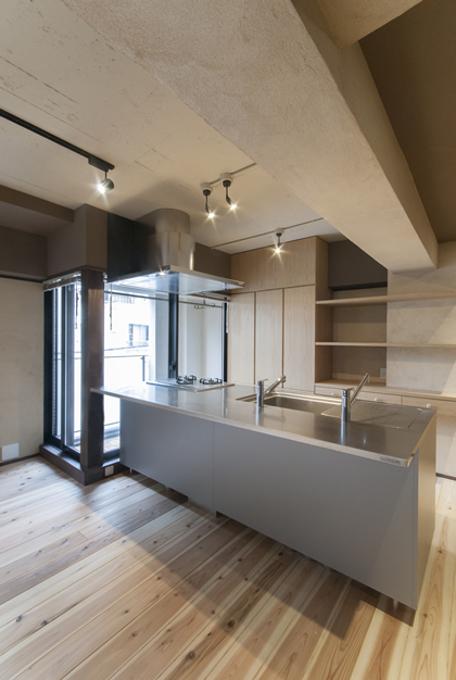 この建物は、東京を代表する繁華街の中心に位置しています。以前は旅館として使用され、一家の家計を支えていました。その後、時代が変化し、旅館はその役割を終えてしまいます。しかし、廃業して時が過ぎ、また、家族に変化が生じ、いままで空いていたスペースに手を加えて居住することになりました。
