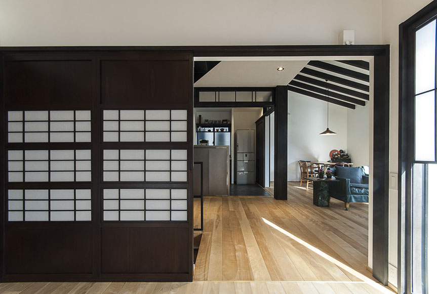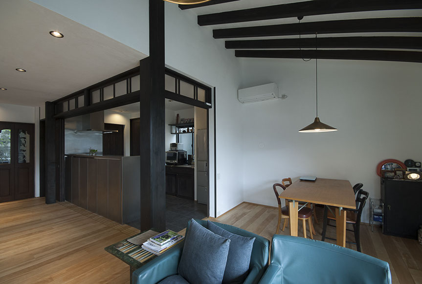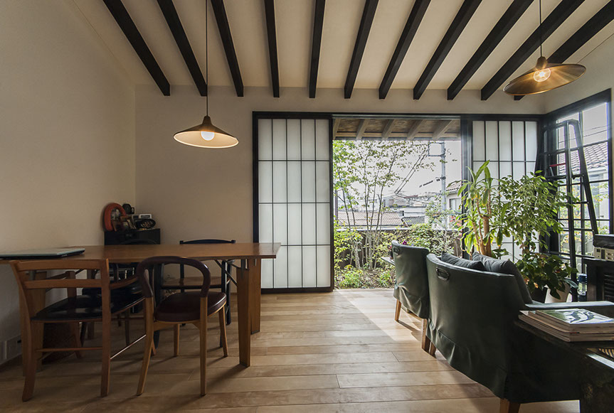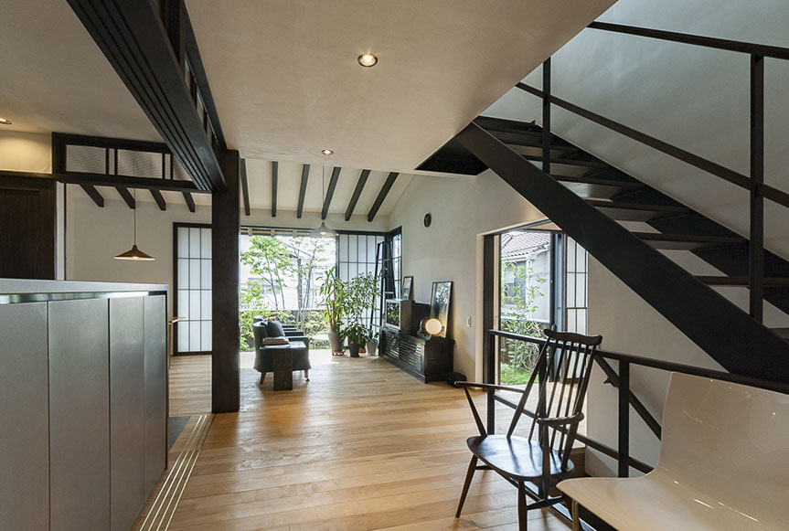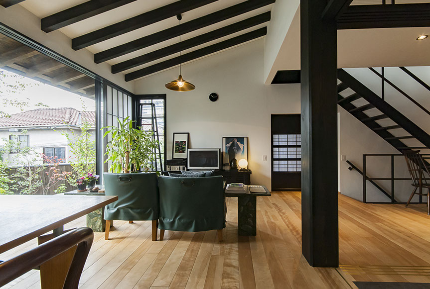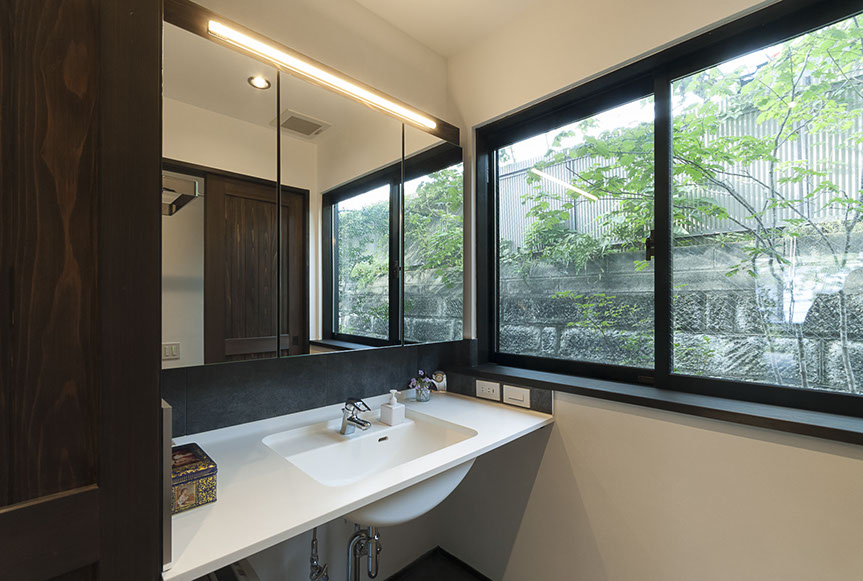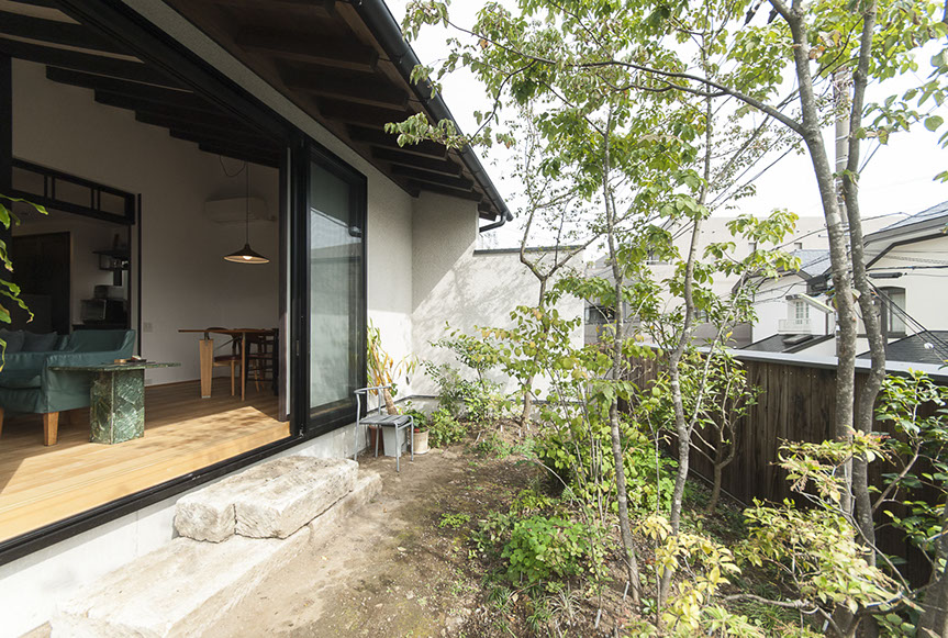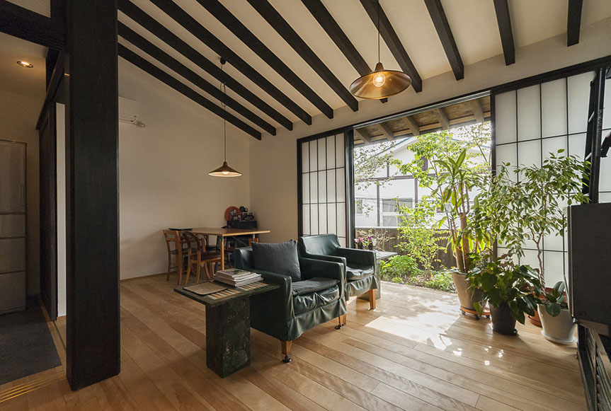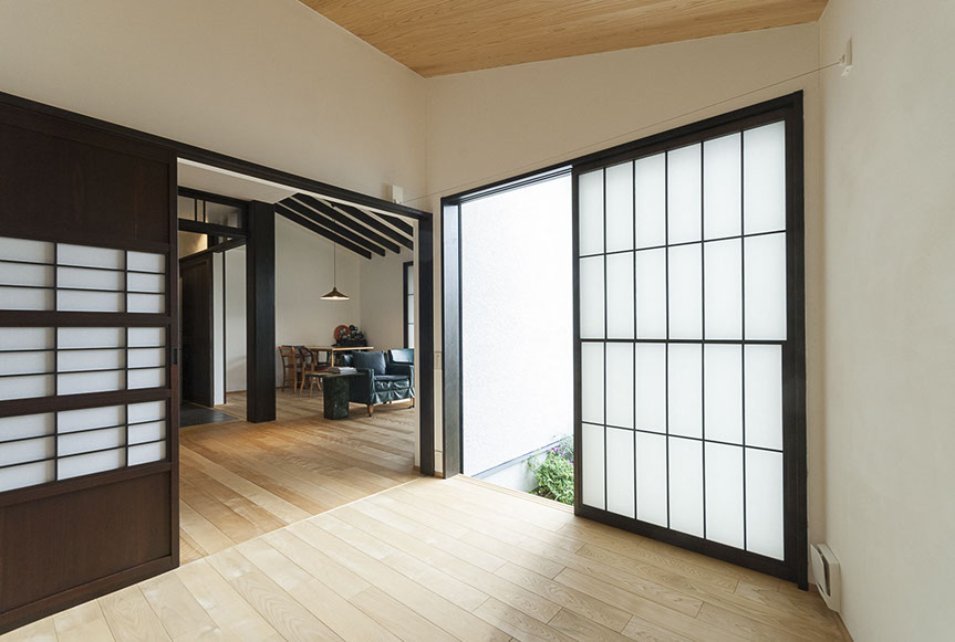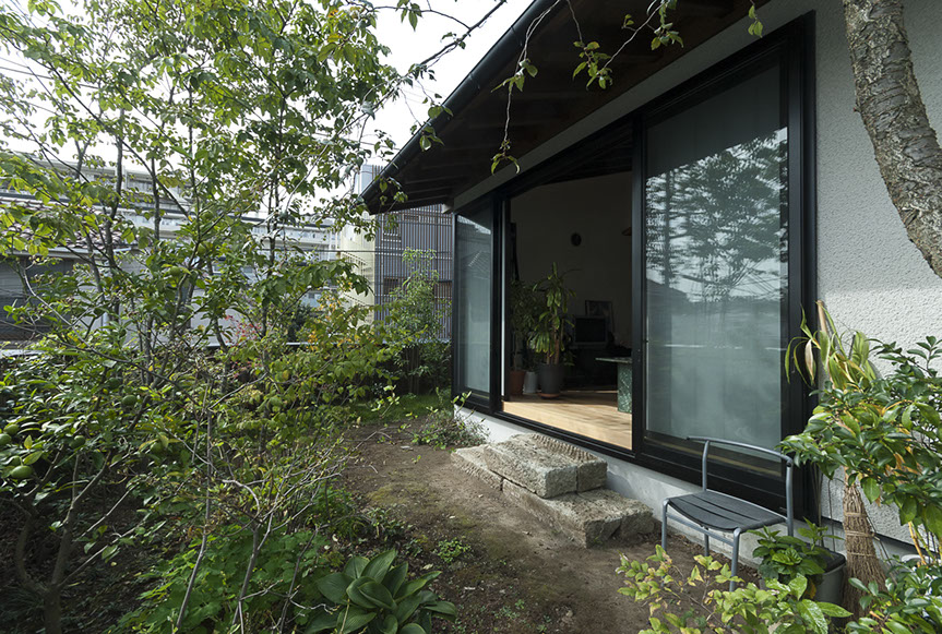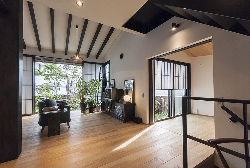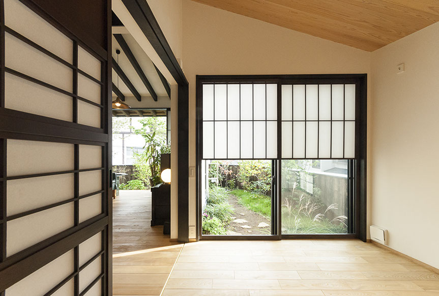 しかし、空気がおいしいだけでは、まだ住空間として満足な空間とは言えません。さらにワンランク上の空間にする為、主庭に向けて大きな開口を設けました。この開口からは、庭の緑が目に飛び込んでくるだけでは無く、太陽の光が室内を明るく照らし、風が四季の匂いを運んでくれます。
